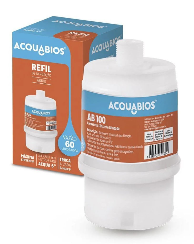 Refil AB100 Granular Carbon Blindado Rosca De 1/2 1005-0002 A Linha de Ponto de Uso da Acquabios é muito prática, com modelos diferentes para diversas aplicações. Esta linha tem opções de filtros para instalações diretamente no ponto de água, sob bancada da pia ou outros. Também pode ser utilizado como reposição para filtros de outros fabricantes que atendam esta medida e acabamento.